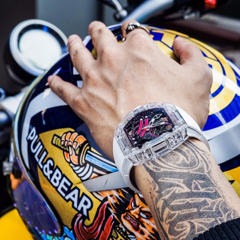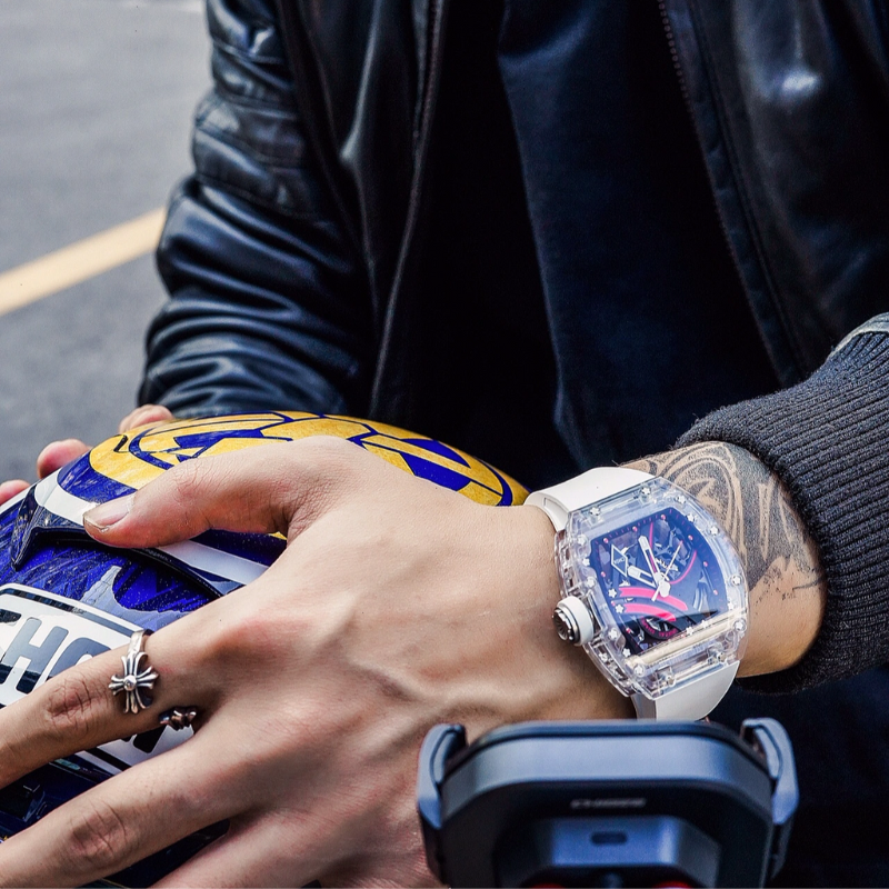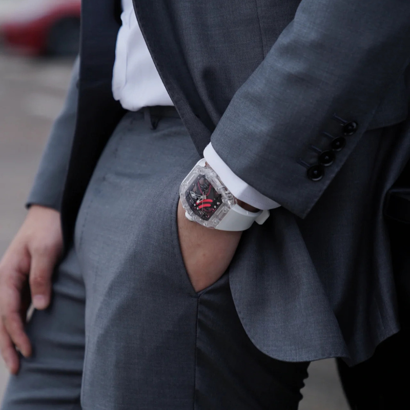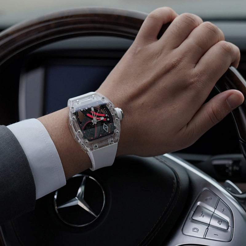 Delivered in a high-quality acrylic box, with a warranty card included, this watch offers an elevated unboxing experience.
