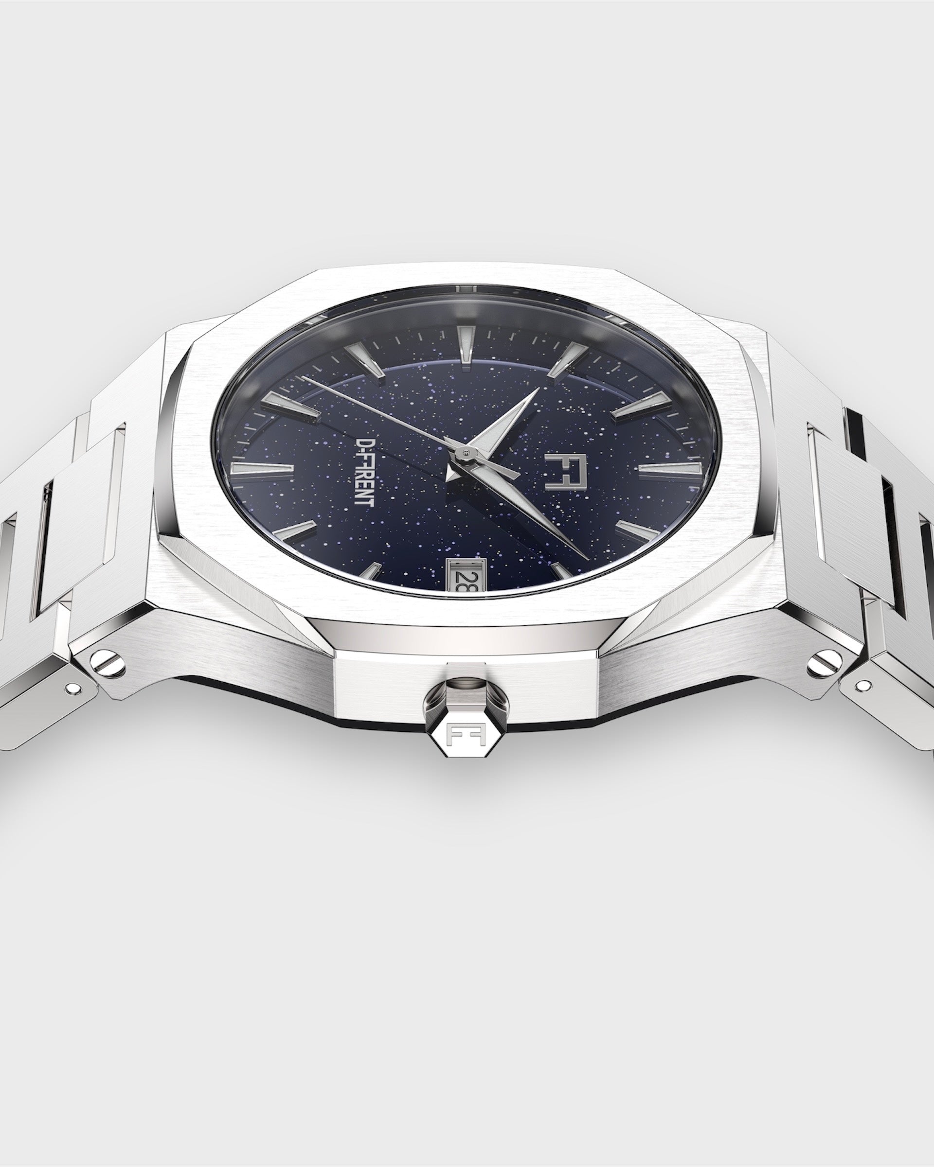 Sapphire Glass: Scratch-resistant with minimalist markers and a date window at 3 o’clock.