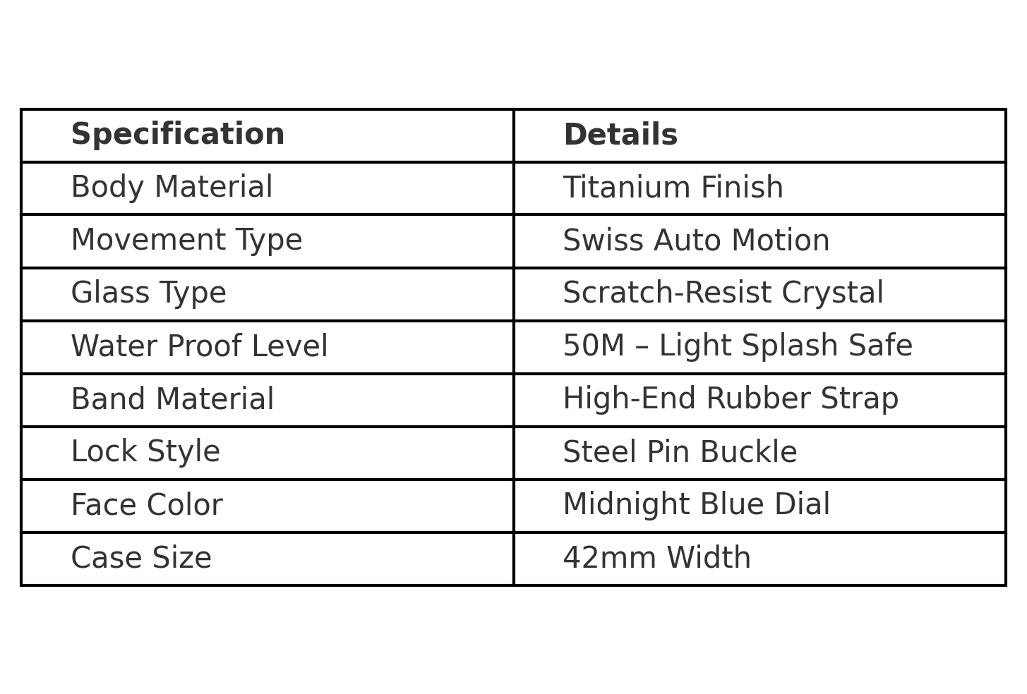 🕒 Product Specifications: