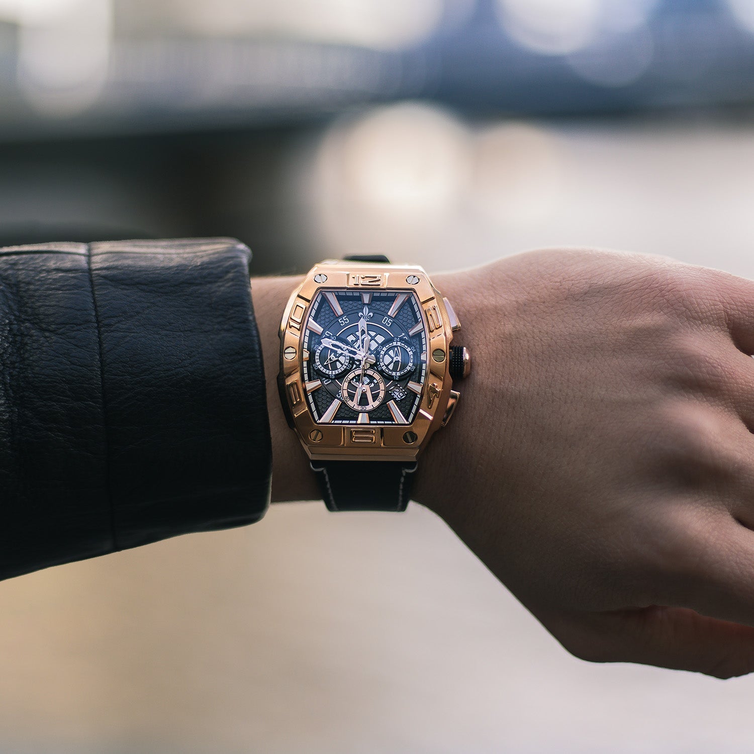 This watch is more than a timekeeper—it’s a statement of confidence. From the luxury rose gold accents to its multi-functional chronograph design, it’s built for men who demand both style and performance.